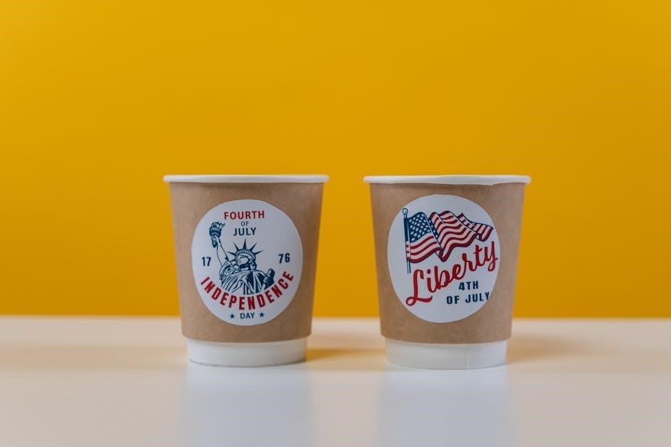 Fireworks symbolize celebration and the joyous atmosphere of Independence Day. These elements can be used as background patterns‚ borders‚ or central design features. Designs can range from realistic depictions to stylized illustrations‚ fitting various brand identities.
