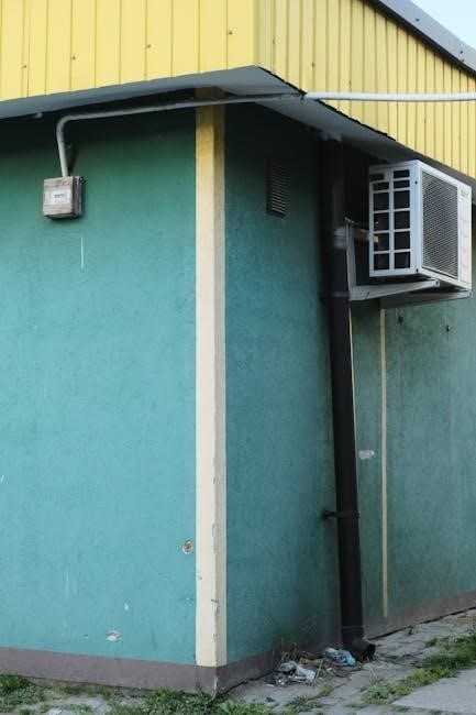 Wall Mounting: Use the provided mounting bracket to securely attach the indoor unit to a sturdy wall. Ensure the wall can support the unit’s weight, especially when full of condensate. Drill pilot holes before inserting screws for easier installation and to prevent wall damage.