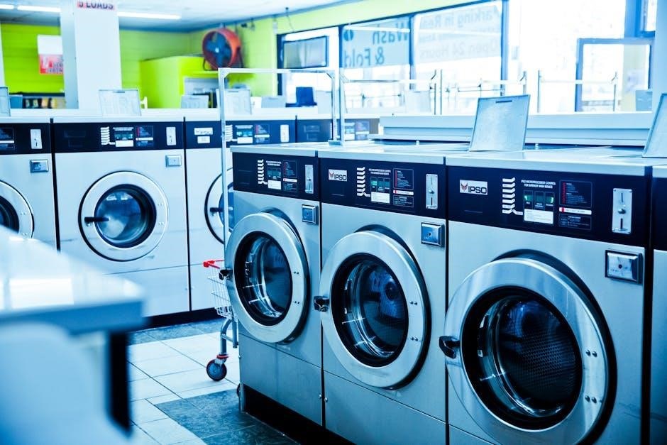 Keep children and pets away from the washer and dryer during operation․ Do not overload the machines‚ as this can cause damage and pose a safety hazard․ Avoid using flammable liquids or materials near the dryer‚ as they could ignite․ Inspect hoses and connections regularly for leaks or damage․ Read and understand all warnings and instructions in this manual before use․ Failure to follow these precautions could result in injury or property damage․ Proper ventilation is crucial when using a dryer to prevent the buildup of moisture and potential mold growth․